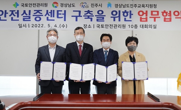 진주시와 경남도, 진주교육지원청, 국토안전관리원은 4일 국토안전관리원 부설 국토안전실증센터 성공 구축을 위한 협약식을 가졌다.