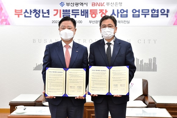 부산시는 6일 오전 부산은행과 업무협약을 맺고 오는 8월 '부산청년 기쁨두배통장'을 출시한다고 밝혔다.