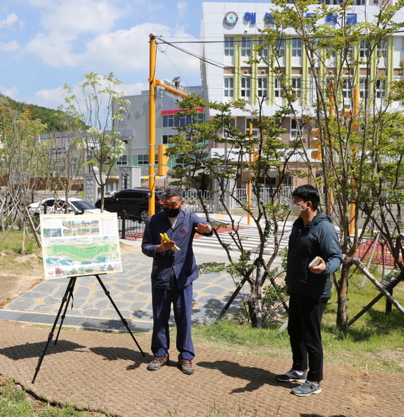 오규석 기장군수는 6일 오전 일광신도시 '삼성숲공원 학교 가는 길 정비사업' 준공 현장을 방문했다.