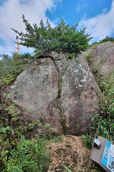 줄사철나무가 의지하고 있는 바위에는 명문이 음각돼 있다. 이는 조선시대 금산을 방문한 이들이 성명(姓名)을 새겨놓은 것으로 관찰사·목사·부사 등 다양한 벼슬아치들이 금산을 애호해 찾아왔음을 증명해주는 기록이므로 사료적 가치를 지닌다.