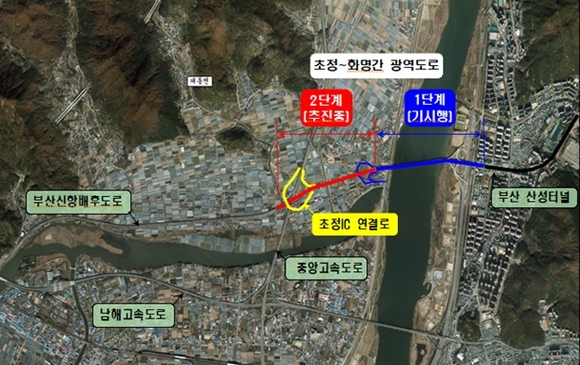 해당 광역도로는 2003년 김해시와 부산시간 협약 체결 후 화명~안막 구간이 2012년 개통됐으나 김해시 행정구역 내 잔여 안막~초정 구간은 시예산 부족으로 그동안 공사가 지연됐다.