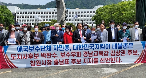 대한민국지키기 불교도총연합과 자유민주애국시민총연합 경남지부 회원 500여명이 김상권 경남도교육감 예비후보 지지를 선언했다.