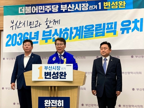 변성완 더불어민주당 부산시장 후보가 "2036년 부산하계올림픽 성공 개최로 개항 160주년을 맞는 부산의 미래 100년을 준비하겠다"고 선언했다.
