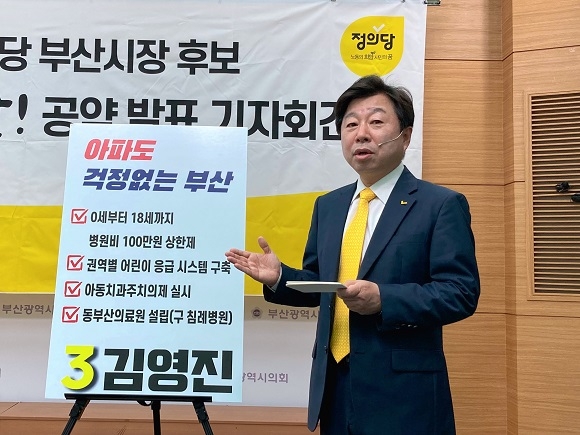 김영진 정의당 부산시장 후보가 돌봄과 복지, 공공의료가 정상화된 도시를 만들겠다고 밝혔다.