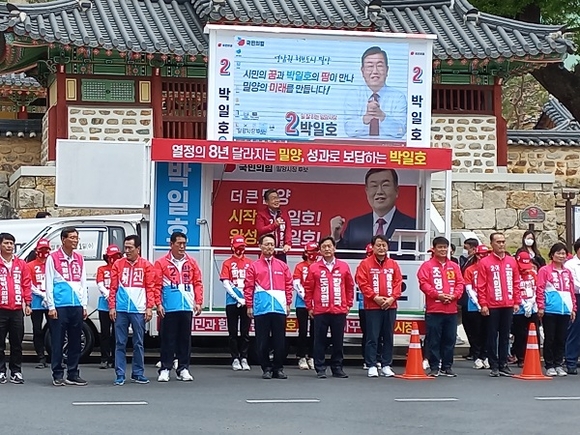 3선에 도전하는 박일호 국민의힘 밀양시장 후보는 19일 내일동 관아 앞에서 선거운동 시작을 알리는 출정식을 갖고 본격적인 선거 유세활동에 돌입했다.