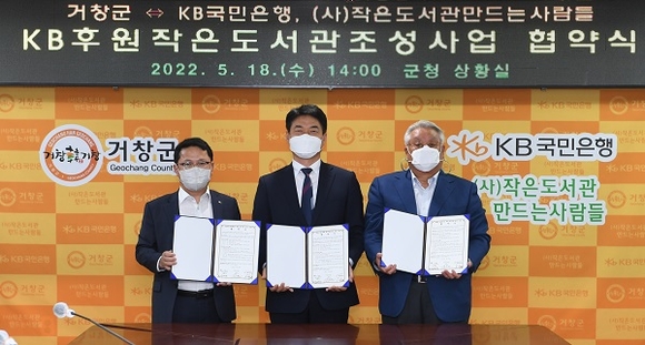 경남 거창군은 지난 18일 KB국민은행, (사)작은도서관만드는사람들과 '2022년 KB후원 작은도서관 조성사업' 추진을 위한 업무 협약을 체결했다.