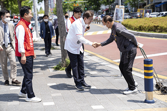 이후 오후 4시 30분에는 북구 구포시장을 방문해 "북구를 반려동물 친화도시 거점으로 탈바꿈시키고, 낙동강의 친환경 생태계를 적극 활용해 생태문화관광지로 성장시키겠다"고 밝혔다.