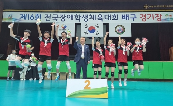 지난 20일 오전 제16회 전국장애학생체육대회 배구 대회가 열린 경북 구미전자공고 체육관. 이전 대회 우승팀인 대전 대표팀과 올해 처음 출전한 경남 대표팀의 배구 결승전이 열렸다.