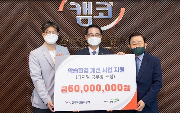 한국자산관리공사(캠코)가 어린이들을 위한 자연학습공간, 디지털공부방을 조성하기 위해 2억원을 기부했다.