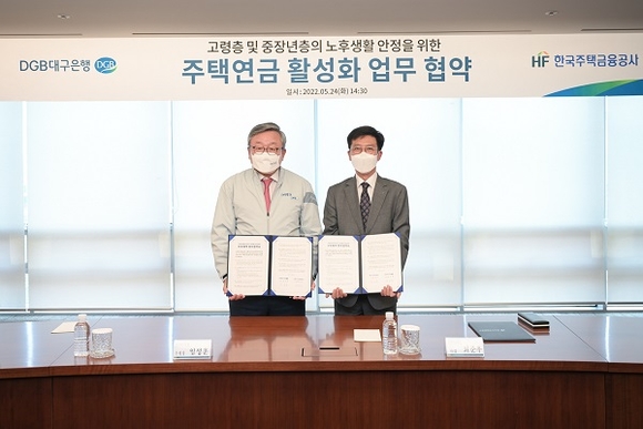 한국주택금융공사(HF)는 대구은행과 '고령층 및 중장년층의 노후생활 안정을 위한 주택연금 활성화 추진 업무협약'을 체결했다고 24일 밝혔다.