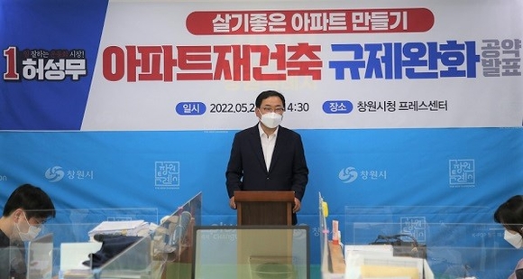 허성무 더불어민주당 창원시장 후보는 24일 시청 프레스센터에서 기자회견을 갖고 시민들의 쾌적한 주거 환경을 위해 '노후 아파트 재건축 규제 완화' 공약을 발표했다.