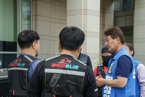 변성완 더불어민주당 부산시장 후보가 25일 오전 10시 지역 배달노동자를 만나 열악한 업무환경 및 불합리한 처우 개선을 위해 머리를 맞댔다.