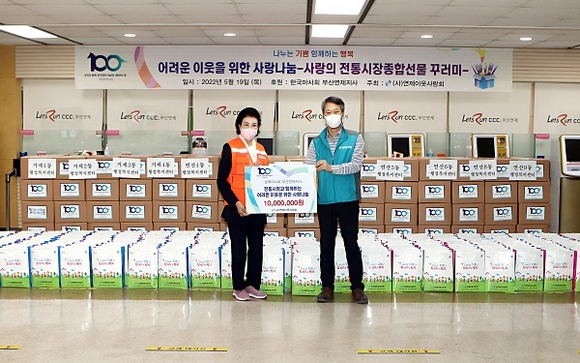 한국마사회 부산연제지사는 지난 19일 사단법인 연제이웃사랑회와 함께 어려운 이웃을 위한 사랑나눔 '사랑의 전통시장 종합선물 꾸러미' 지원 행사를 진행했다.