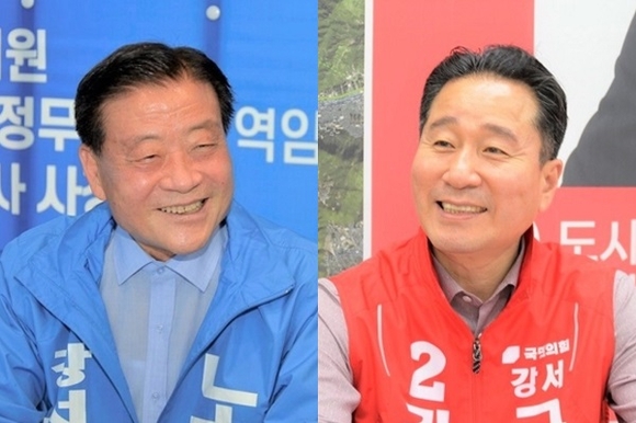 김형찬 국민의힘 강서구청장 후보가 25일 노기태 더불어민주당 강서구청장 후보를 허위사실 유포로 고발하는 등 연일 난타전을 벌이고 있다.