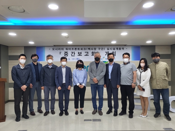 부산도시공사는 지난 19일 오시리아관광단지 내 위치한 워터프론트파크 백사장 구간에 대해 실시설계용역 중간보고회를 개최했다고 밝혔다.