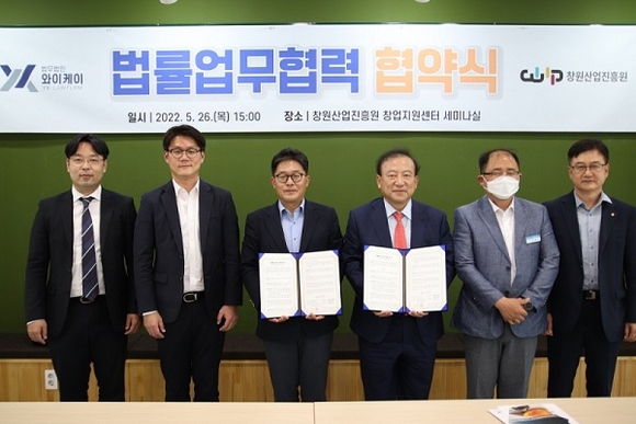 이날 협약식에는 창원산업진흥원 백정한 원장과 법무법인YK의 김학훈 대표변호사, 나자현 창원지사장 등이 참석했다.