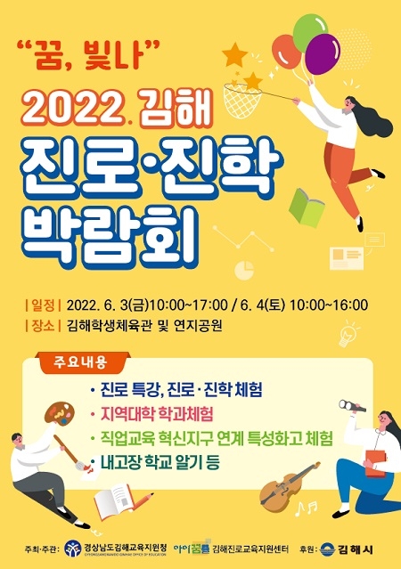 김해교육지원청은 오는 6월 3, 4일 양일간 김해학생체육관 및 연지공원 광장에서 경남도교육청과 김해시 후원으로 '2022 김해 진로·진학 박람회'를 연다.