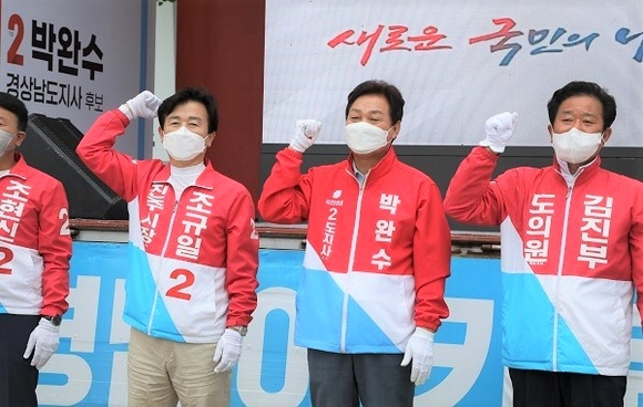 박완수 국민의힘 경남도지사 후보가 30일 진주와 사천, 거제, 통영을 차례로 방문해 도민의 지지를 호소하는 강행군 유세를 이어가고 있다.