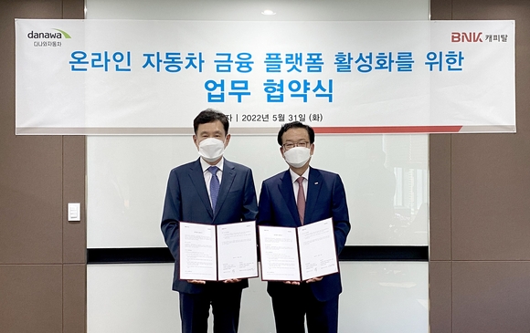 BNK캐피탈은 31일 가격비교 사이트인 ㈜다나와와 '온라인 자동차 금융 플랫폼 활성화를 위한 업무 협약'을 체결했다고 밝혔다.