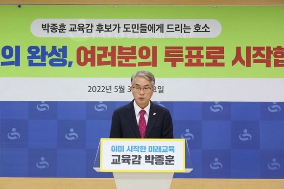 박종훈 경남도교육감 후보는 31일 “경남 미래 교육의 완성은 바로 여러분의 투표로 시작된다”며 6.1지방선거 투표 참여를 호소했다.