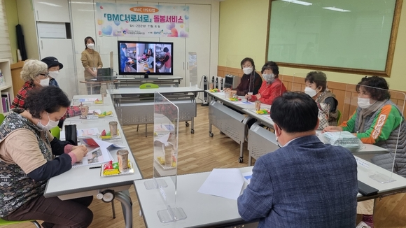 'BMC 서로서로 돌봄사업'은 공사가 운영하는 영구임대아파트 5개 지구(다대3·5, 동삼1·2, 학장1) 입주민 중 노인장기요양보험 등의 공적 혜택을 받지 못해 복지사각지대에 놓인 고령자 또는 장애인을 위한 돌봄 지원사업 다.