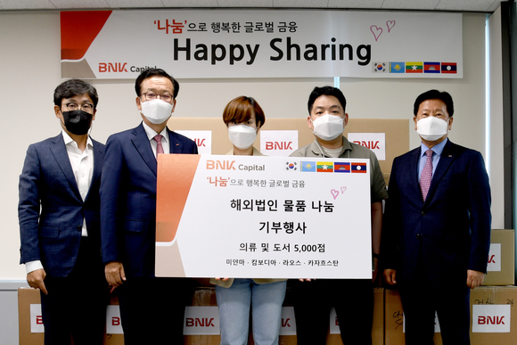 'BNK 해피쉐어링'은 BNK캐피탈의 해외 진출 지역 소외계층을 대상으로 진행하는 사회공헌사업이다. 올해에는 BNK캐피탈 임직원들이 기부한 의류와 생활용품 등 4000여점의 물품을 미얀마와 캄보디아, 라오스 등지의 초등학교에 전달할 예정이다.