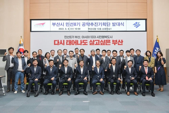 박형준 부산시장이 민선 8기 시정의 혁신적 도약 로드맵을 구축할 '공약추진기획단' 구성을 마쳤다. 기획단은 '다시 태어나도 살고 싶은 도시 부산'을 실현하기 위해 20여일간 박 시장의 후보자 시절 공약 전략화 및 구체화에 나선다.