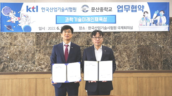 국내 유일 공공 종합시험인증기관인 한국산업기술시험원(이하 KTL)은 진주시에 소재한 문산중학교(이하 문산중)와 '지역사회 과학기술 미래인재 육성을 위한 업무협약'을 체결했다고 9일 밝혔다.