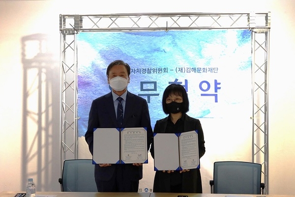 김해문화재단과 경남자치경찰위원회는 지난 8일 김해문화의전당 1층 윤슬미술관에서 업무 협약을 체결했다.