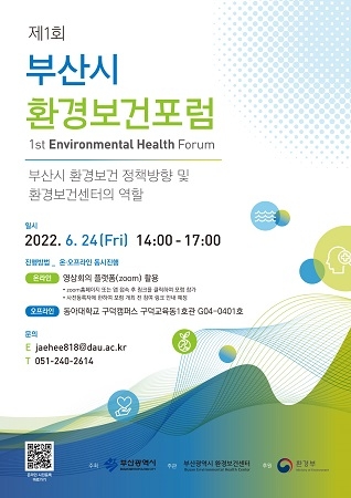 이번 포럼은 동아대가 지난 3월 환경부 권역형(부산시) 환경보건센터에 선정된 뒤 처음 열리는 행사로 오는 24일 오후 2시 동아대 구덕캠퍼스 구덕교육동과 영상회의 플랫폼(zoom)에서 온·오프라인으로 동시 진행된다.