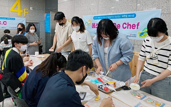 영산대학교 서양조리전공 대표동아리 학생들이 해운대구 청소년어울림마당 행사에서 쿠키 만들기 재능기부를 진행하고 있다. (사진=영산대 제공)