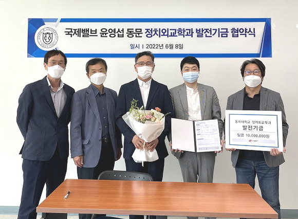 동아대학교 정치외교학과는 동문 국제밸브 윤영섭 대표가 학과 발전기금 1000만 원을 기부했다고 13일 밝혔다.