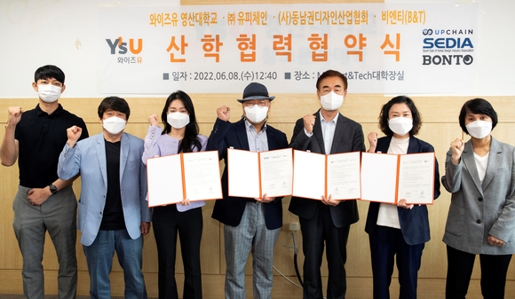 와이즈유 영산대학교 Art&Tech대학이 지난 8일 사단법인 동남권디자인산업협회(SEDIA), 유피체인, 비엔티(B&T)와 산학협정을 체결했다고 밝혔다.