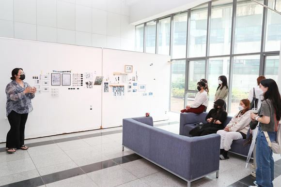 로비층엔 기획전과 참여형 작품이 놓였고, 5~8층 실기실에는 학생들의 다양한 시도와 고민이 드러나는 작품을 배치, 소통 공간 의미를 더했다. 복도와 사물함실 등 공간에도 관람자들의 동선에 따라 작품이 노출되도록 했다.