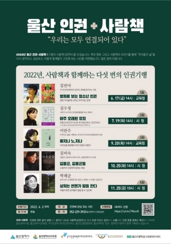 울산시는 지역 내 인권존중 문화와 인권 가치의 확산을 위해 시민인권강좌 ‘2022년 울산 인권+사람책’을 운영한다고 16일 밝혔다.