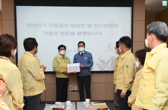 한편, 정 당선인을 포함한 인수위원들은 신속한 군정 현안 파악과 민선8기 군정 방침 수립을 위해 지난 15일부터 16일까지 양일간에 걸쳐 현장방문을 진행했다. 주요 현장방문지는 동남권 방사선 융합클러스터 조성 사업, 도시철도 정관선(좌천역), 정관 빛·물·꿈 교육행복타운, 기장시장, 일광 빛·물·꿈 교육행복타운, 일광유원지 조성사업, 반려동물파크 등이다.