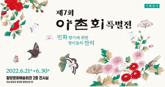 경남 함양군은 21일부터 30일까지 문화예술회관 전시실에서 '제7회 야촌회 특별전 – 민화향기에 취한 쟁이들의 잔치' 기획전시를 개최한다.