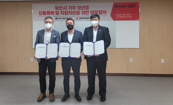 부산신용보증재단 부산청년희망 신용상담센터는 최근 신용회복위원회 서민금융통합지원센터 부산센터, 사상센터와 함께 '부산시 거주 청년층 신용회복 및 자립지원을 위한 업무협약'을 체결했다고 21일 밝혔다.