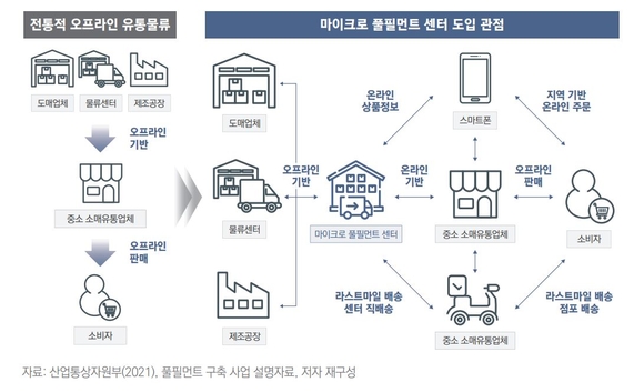 온라인 유통시장이 급격하게 성장하면서 대형 유통업체와 유통 스타트업은 마이크로 풀필먼트 센터를 도입해 소비자 구매 패턴에 빠르게 대응하고 있다. 그러나 지역의 중소 유통업체들은 온라인 거래 방식에 효율적으로 대응하지 못할 뿐만 아니라 물류인프라 부족으로 인해 경쟁력이 약화되고 있다.