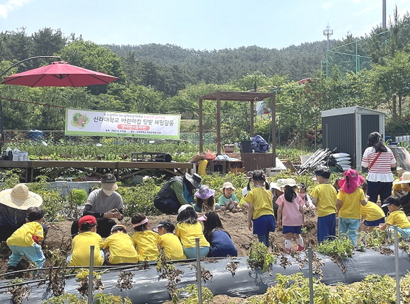 신라대학교 평생교육원은 지난 17일 부산시 '50+생애재설계대학' 사업과 연계해 어린이집 원생을 대상으로 텃밭 체험 프로그램을 열었다고 21일 밝혔다.