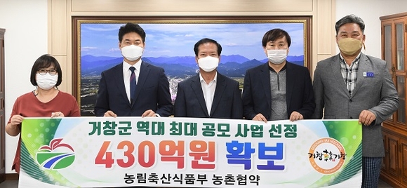 경남 거창군은 농림축산식품부 농촌협약 공모사업에 선정돼 단일사업 역대 최대 규모인 430억 원의 농촌지역개발 사업비를 확보했다고 21일 밝혔다.
