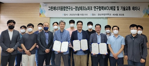 경상국립대학교 공과대학 나노·신소재융합공학과 및 그린에너지융합연구소와 경남테크노파크 조선해양센터 및 나노융합센터는 지난 15일 경상국립대 가좌캠퍼스에서 산업체 기술 혁신을 위한 공동연구 및 핵심 인재 양성을 위해 업무협약을 체결했다.