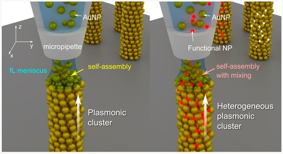 이번 연구에서는 마이크로피펫을 이용한 금속 나노입자 및 다양한 나노 물질들의 3차원 자기 조립 방법을 제시했다.