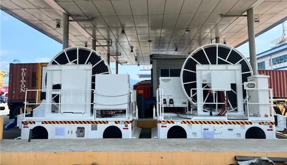 부산항만공사(BPA)는 부산항 신항에 '이동형 육상전원공급설비(AMP) 연결 케이블' 2기를 국내 최초로 도입했다고 22일 밝혔다.