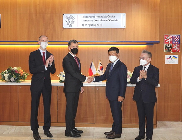 이날 개관식에는 체코 명예 영사로 위촉된 강호찬 부회장과 구스타브 슬라메취카 주한 체코 대사, 강의구 부산영사단 단장 및 체코 대사관 관계자 등이 참석했다.
