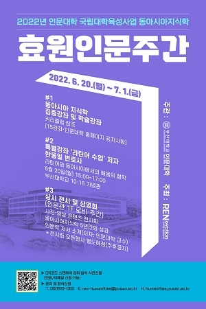 부산대학교 인문대학은 국립대학육성사업의 일환으로 '동아시아지식학 효원인문주간' 행사를 지난 20일부터 오는 7월 1일까지 교내 인문관에서 개최한다고 23일 밝혔다.
