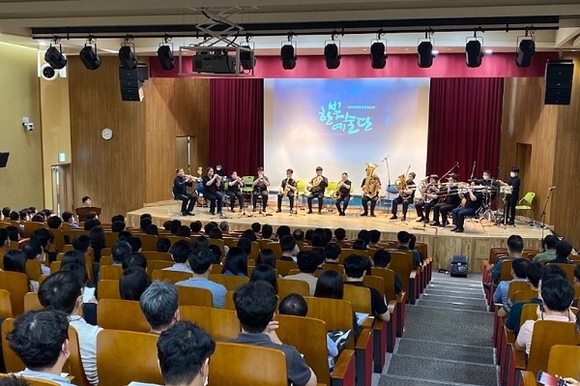 콘서트는 ▲브라스 앙상블 ▲프로젝트 더 밴드 ▲챔버 오케스트라의 연주로, BTS의 Dynamite, 이적의 같이 걸을까, 브람스의 헝가리 춤곡 등 클래식·클로스오버·대중음악으로 구성했다.