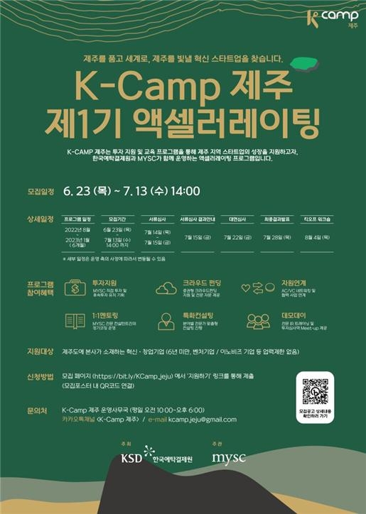 예탁결제원은 2021년 제주도청과 '제주 지역 창업생태계 조성을 위한 혁신·창업기업 지원' 업무협약을 체결해 올해부터 K-Camp 프로그램을 제주 지역으로 확대 운영하게 됐다. 프로그램 운영을 위해 전문 액셀러레이터인 MYSC를 파트너사로 선정했다.