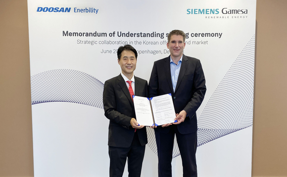 두산에너빌리티는 글로벌 해상풍력 1위인 지멘스가메사(SGRE)와 국내 해상풍력시장에서의 전략적 협력을 위한 MOU를 체결했다고 26일 밝혔다.
