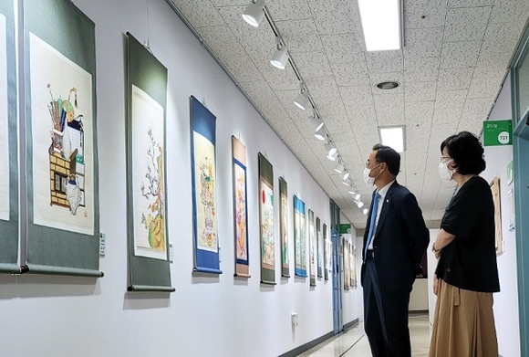 '평생교육원 효원갤러리'에서는 아름다운 도전을 함께한 수료생들의 예술·문화적 성과를 공유하기 위해 지난 14일부터 한지공예·민화·유화·캘리그라피·시민정원사 등 9개 과정 200점 내외의 다양한 작품을 계속해서 무료로 전시하고 있다.